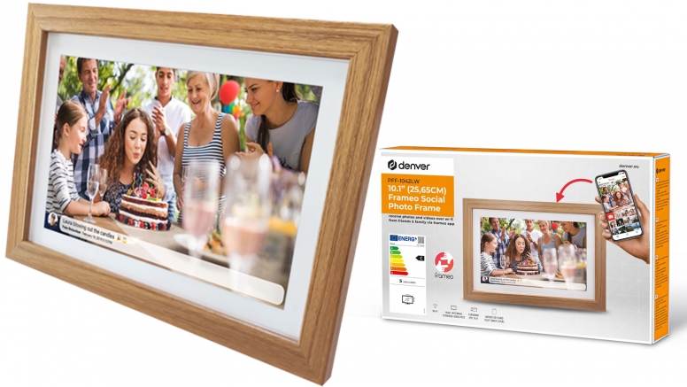 FRAMEO is een nieuw soort social media. Vrienden kunnen met een code met hun smartphone ook foto's en video's naar deze digitale lijst sturen.